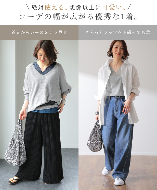 女性ならではのレースを日常に取り入れやすく着回しがきく優秀アイテムです。