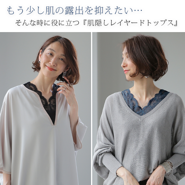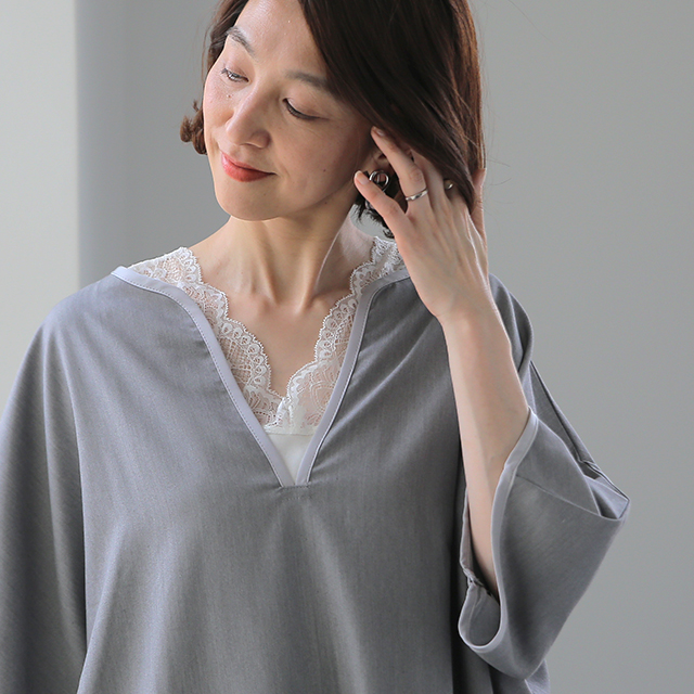 上品な透け感と計算された切替デザインで美しく肌見せ。