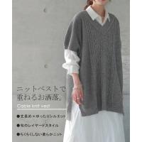 ニット ベスト レディース レイヤード ニットベスト トップス セーター 半袖 チュニック ロング スリット 重ね着 ケーブルニット