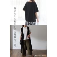 トップス レディース リブ カットソー Tシャツ 半袖 スリット レイヤード