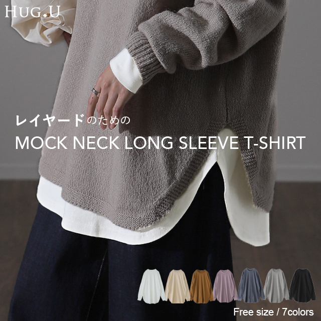 カットソー レディース レイヤード トップス モックネック インナー ロンT 長袖 Tシャツ