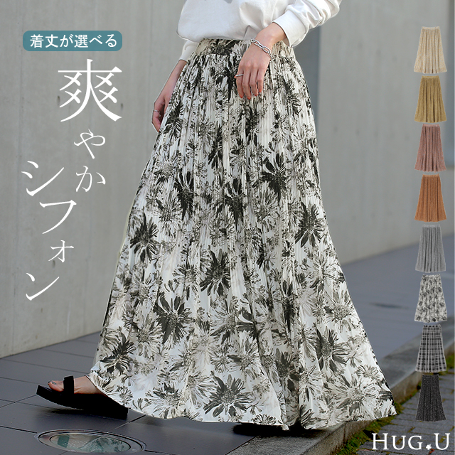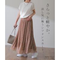 スカート ロング シフォン プリーツ レディ―ス ボトムス プリーツスカート ゴム チェック Aライン 花柄