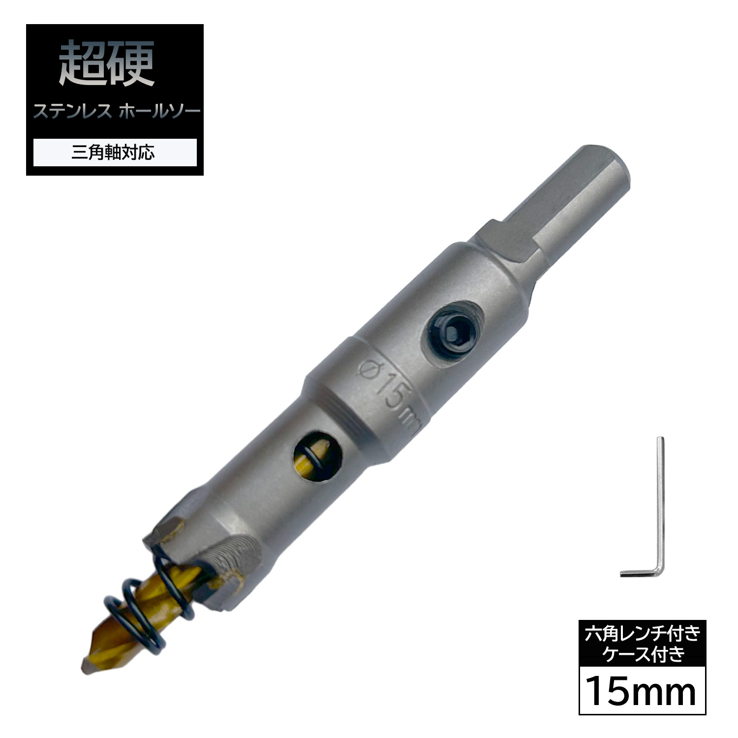ホールソー 15mm 超硬 ステンレス 穴あけ 耐久性 スパイラルドリル 電動ドリル 切削工具【六角レンチ ケース付き】