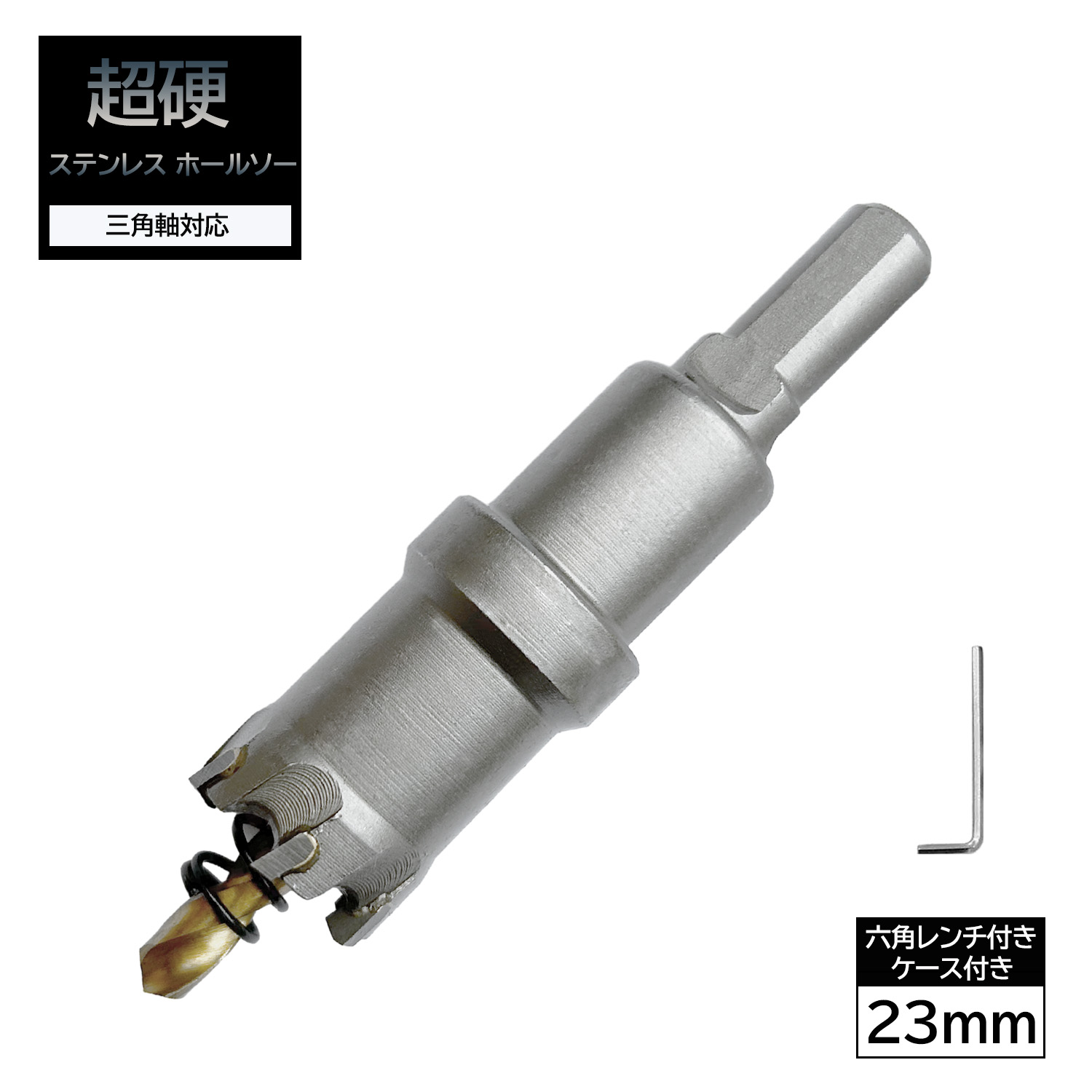 ホールソー 23mm 超硬 ステンレス 穴あけ 耐久性 スパイラルドリル 電動ドリル 切削工具【六角レンチ ケース付き】