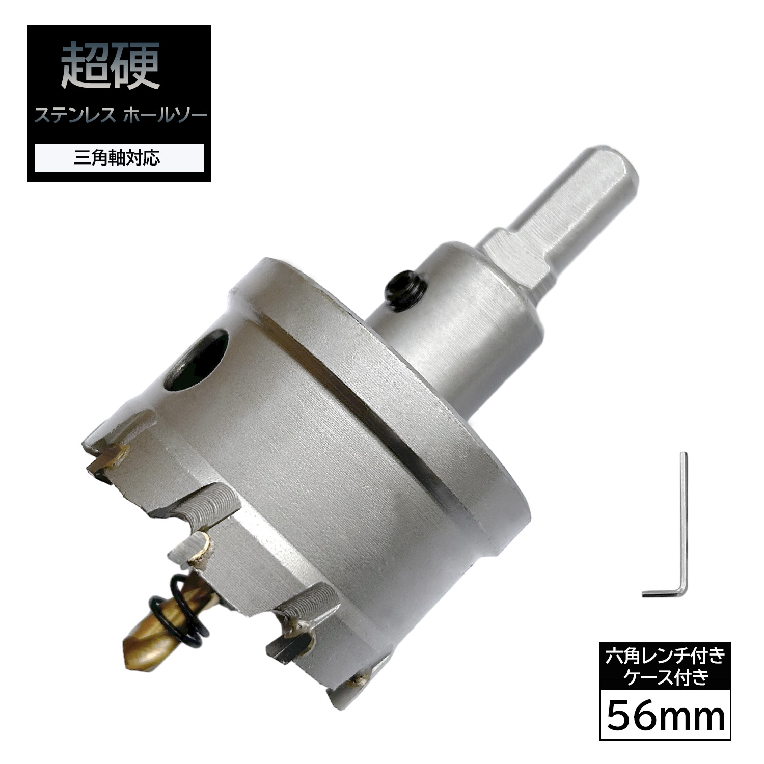 ホールソー 56mm 超硬 ステンレス 穴あけ 耐久性 スパイラルドリル 電動ドリル 切削工具【六角レンチ プラスチック製ケース付き】