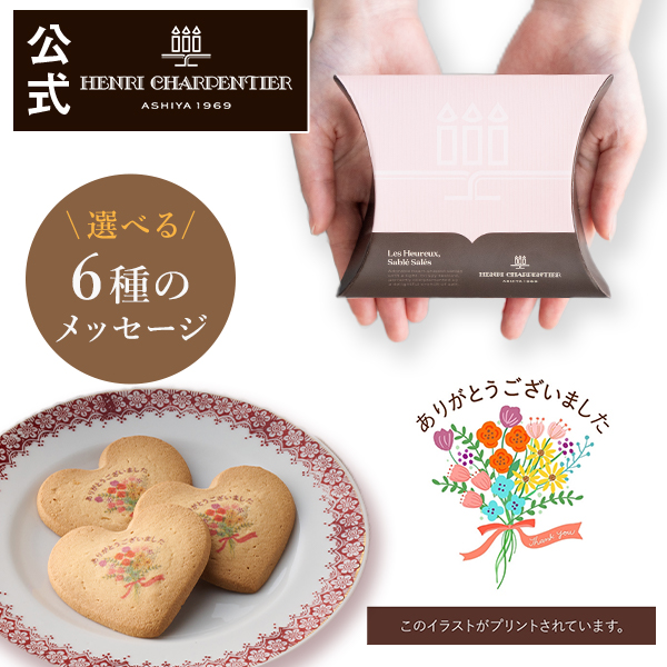 プチギフト お菓子 300円台 退職 プレゼント お礼 アンリ <メッセージ入り・花束(ありがとうございました)>しあわせサブレ3個入 ※お届けは2/17〜4/30まで
