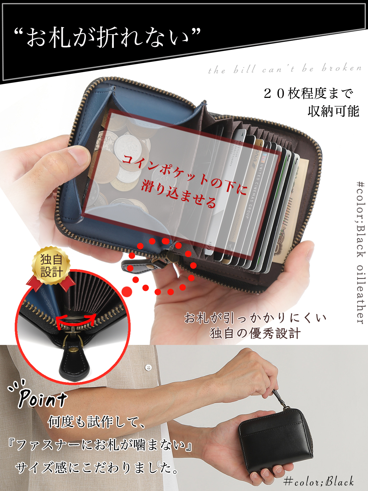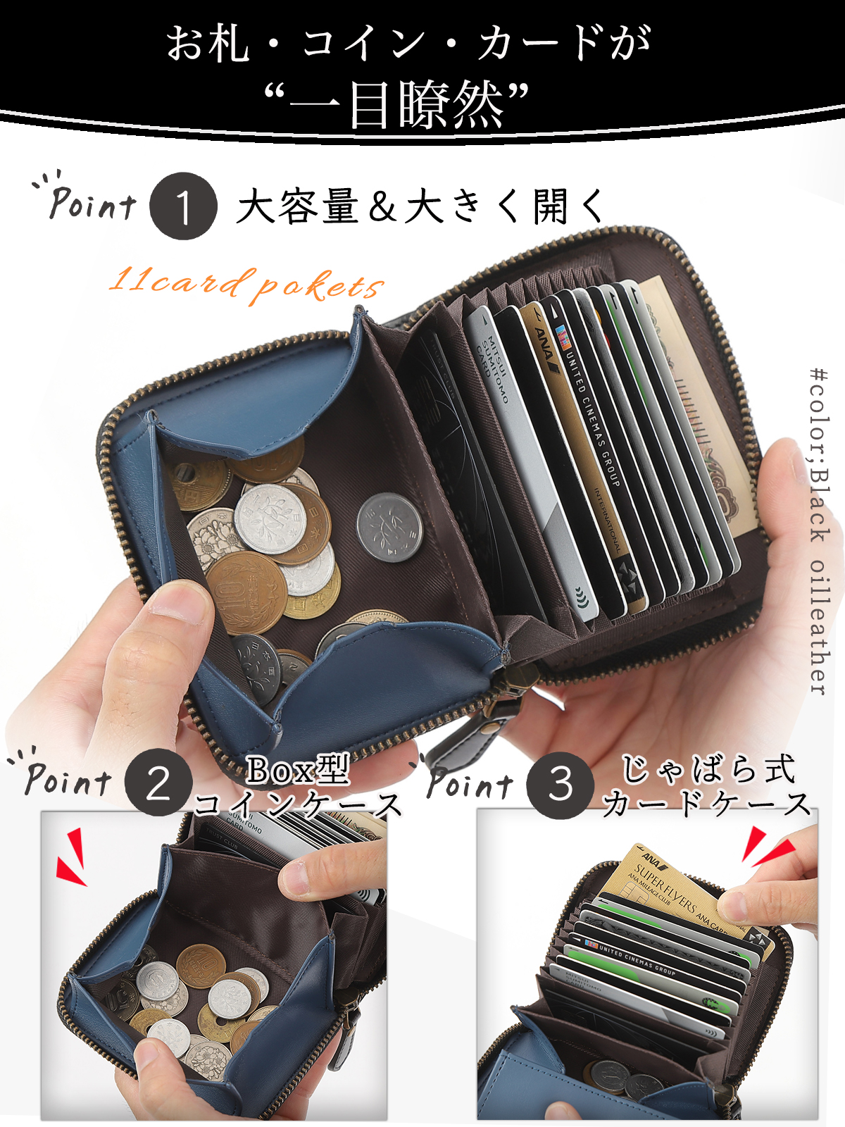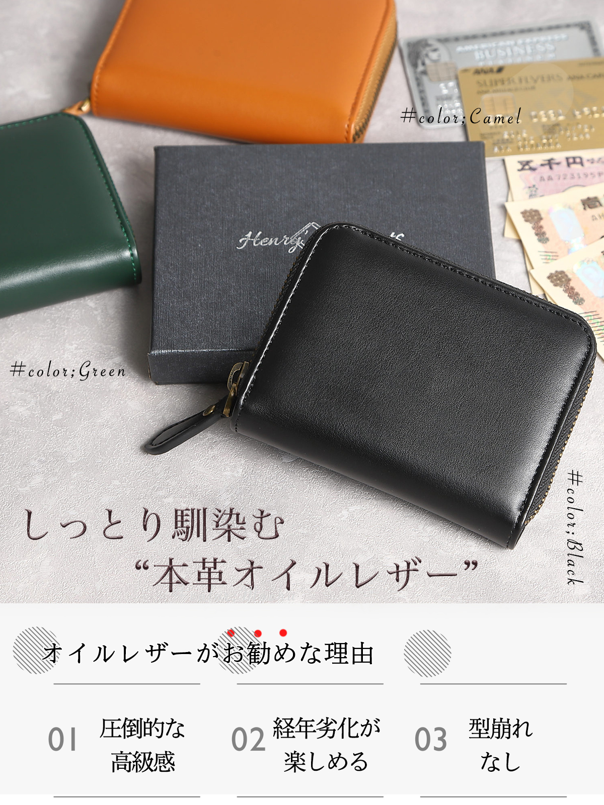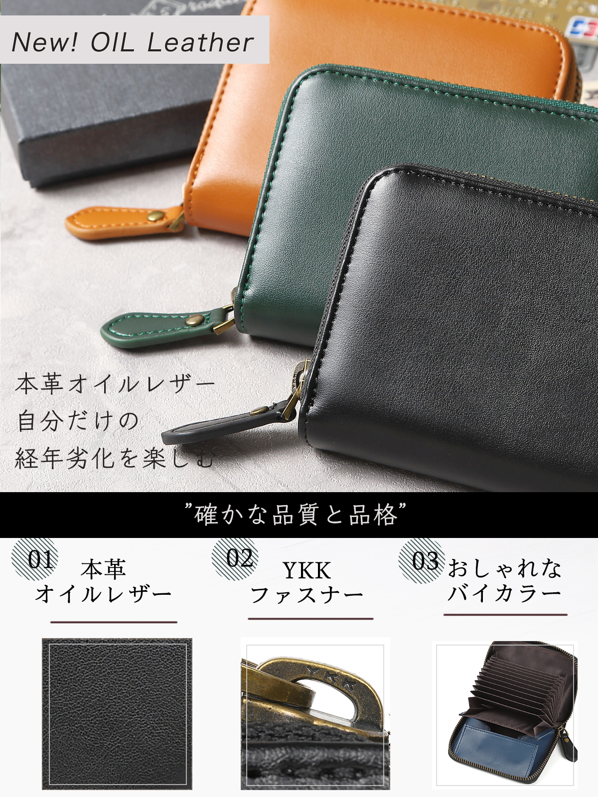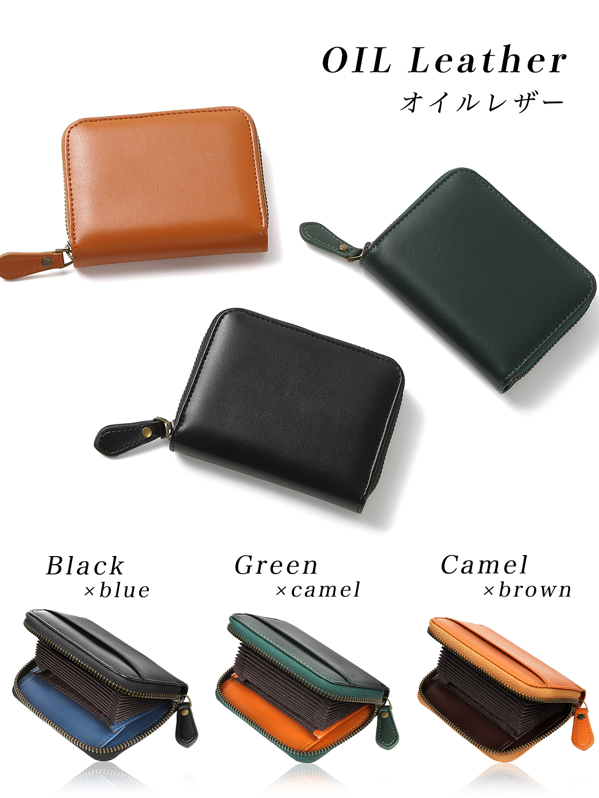 【本革オイルレザー】オイルレザーシリーズが新登場。中の革のカラーがおしゃれなバイカラー仕様。3カラー展開です。
