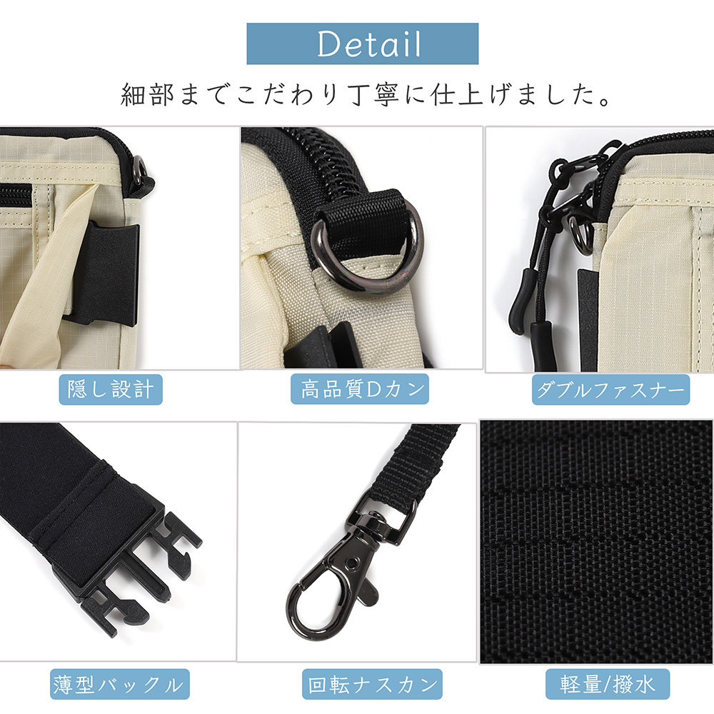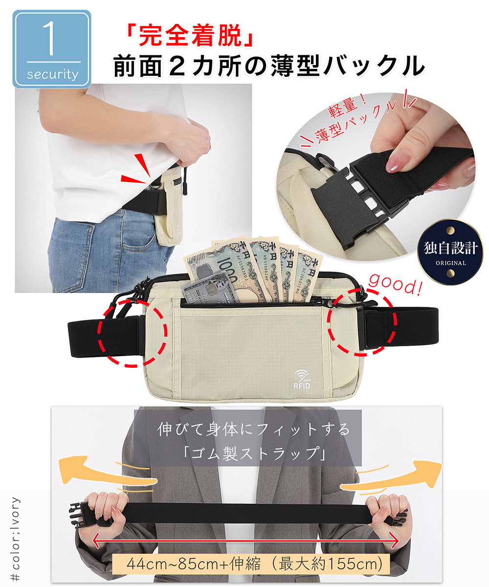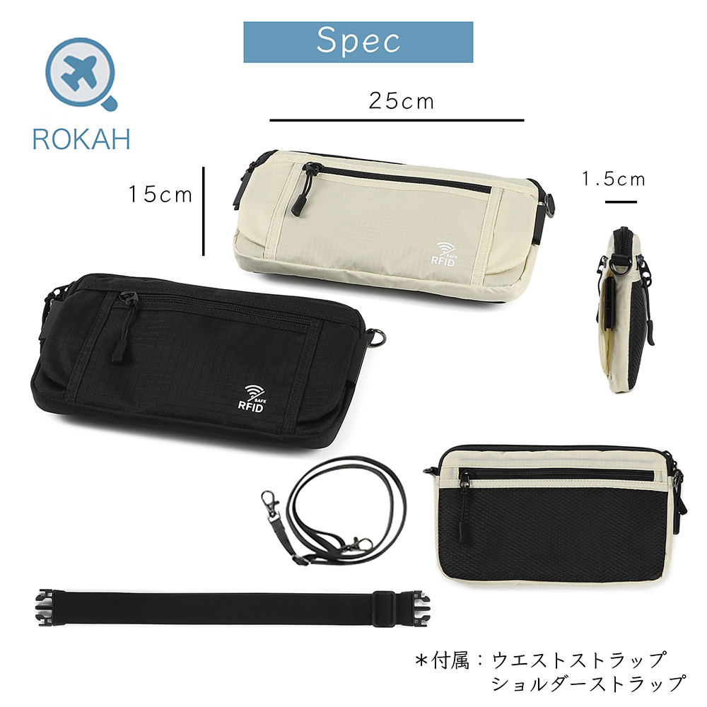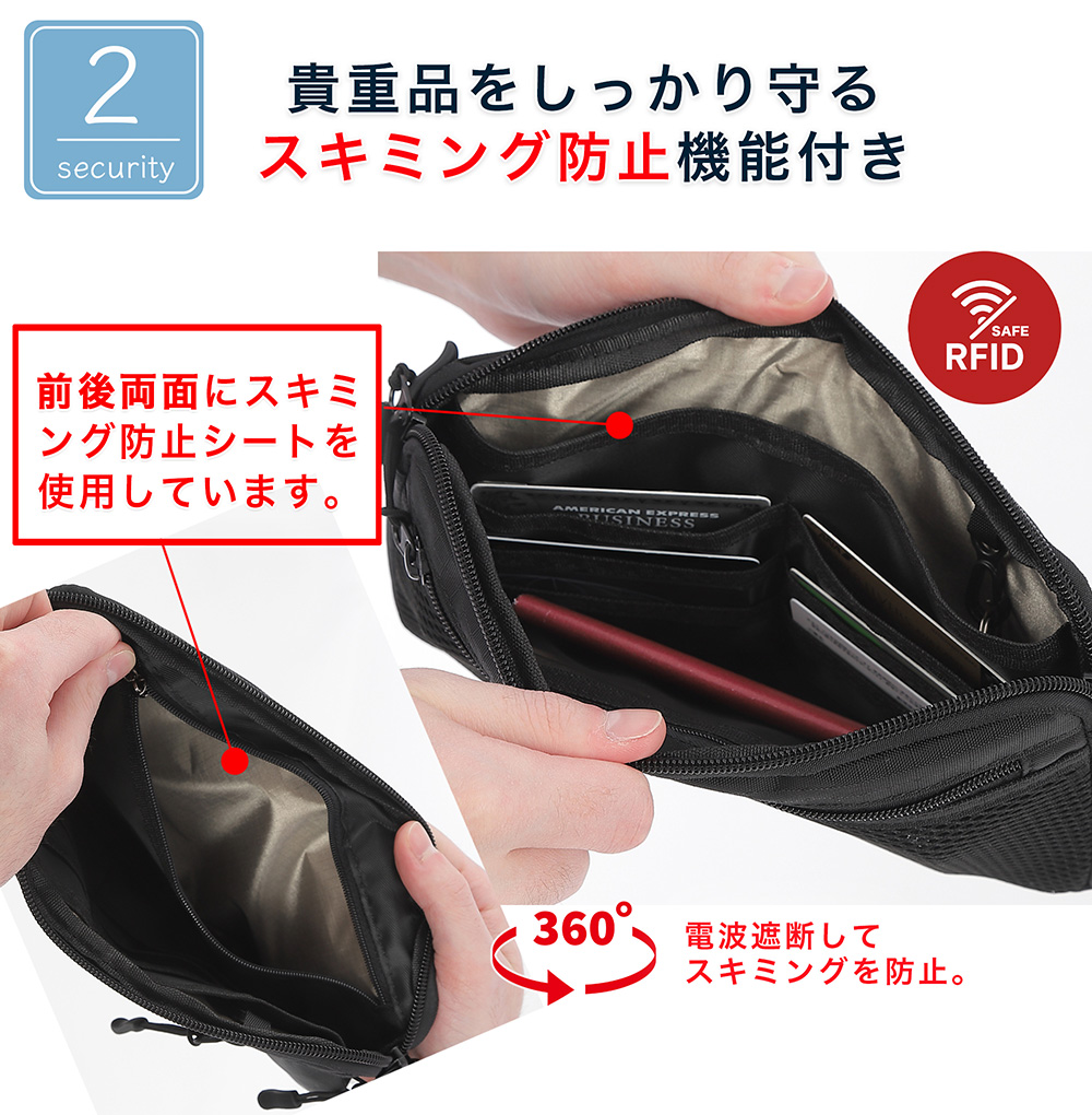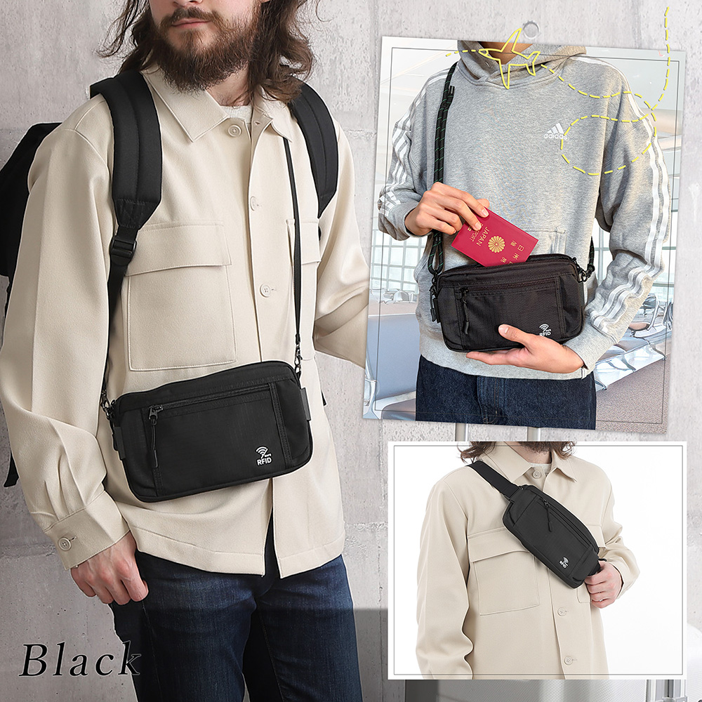 「ベルトが取れる」セキュリティポーチ(ショルダー可)スキミング防止 海外旅行 ウエストポーチ パスポートケース 防犯・スリ対策 大容量 サコッシュ 斜め掛け