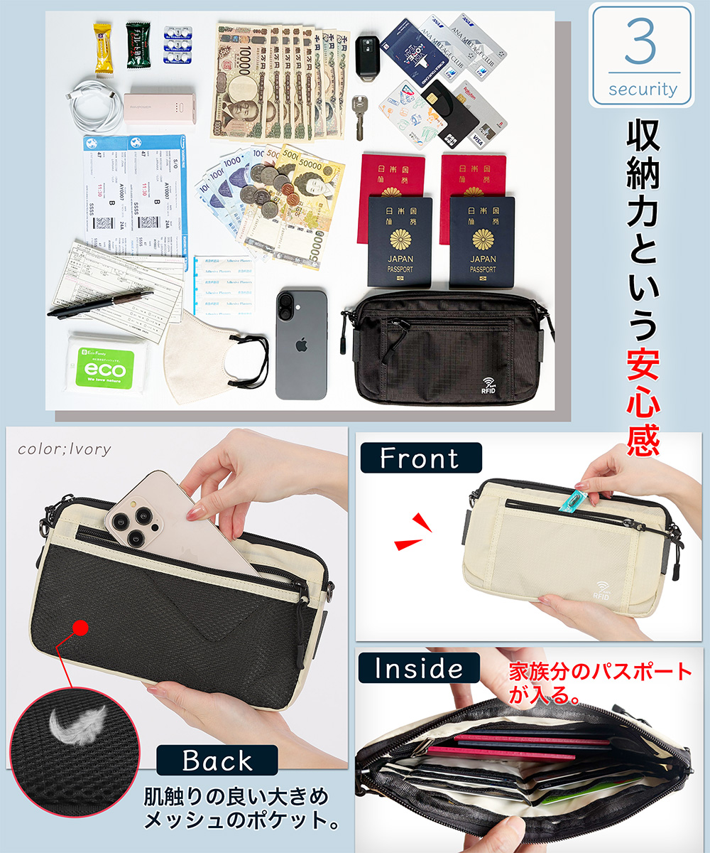 旅行の「不安」を「安心」に。ライブや外出時などにも使える貴重品ポーチです。