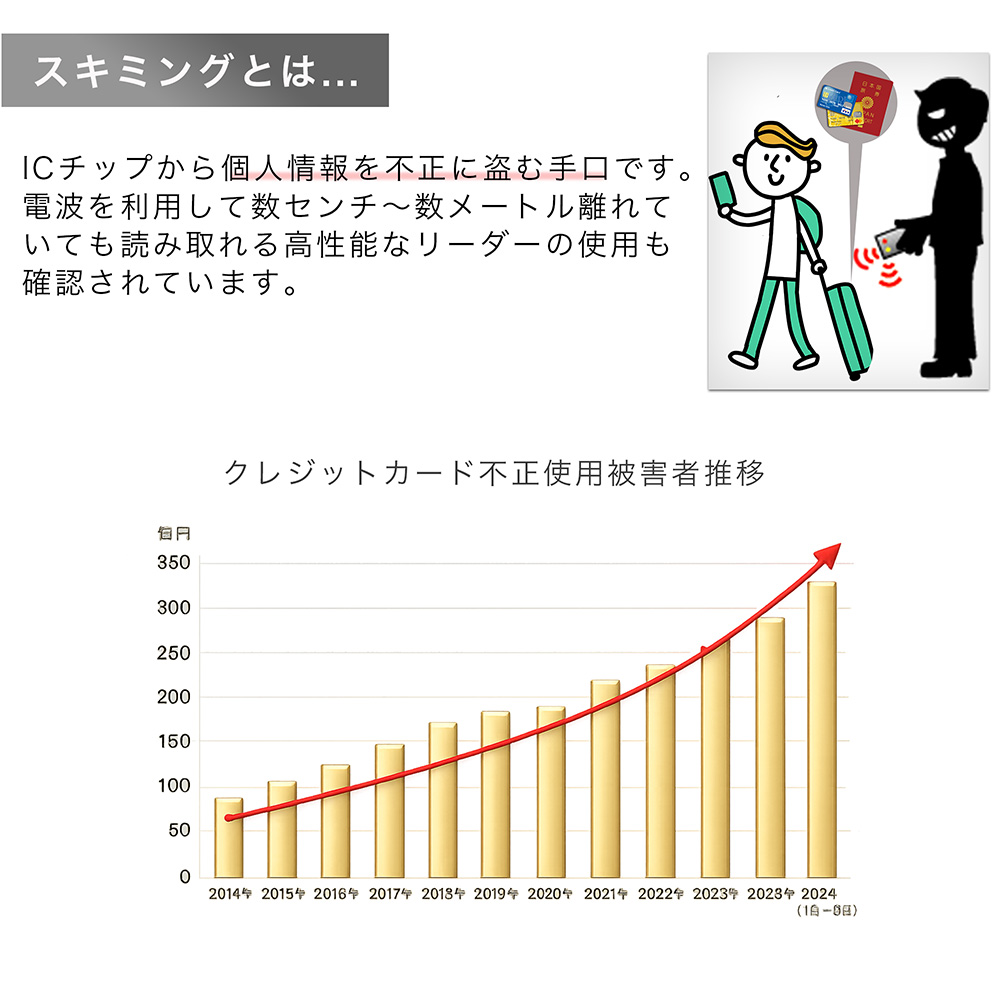 また、スキミング防止RFIDシートを使用しておりセキュリティ対策もしっかりできます。
