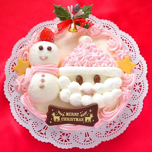 クリスマス 限定 ・ サンタクロース アイスケーキ (ストロベリーピンク) 卵 ・ 小麦 アレルギー対応 6号