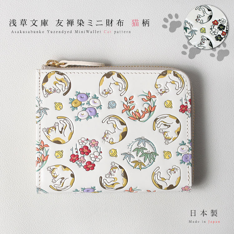 | 商品名 | 浅草文庫 L字ファスナー ミニ 財布 猫 ネコ ねこ 柄 | |||||