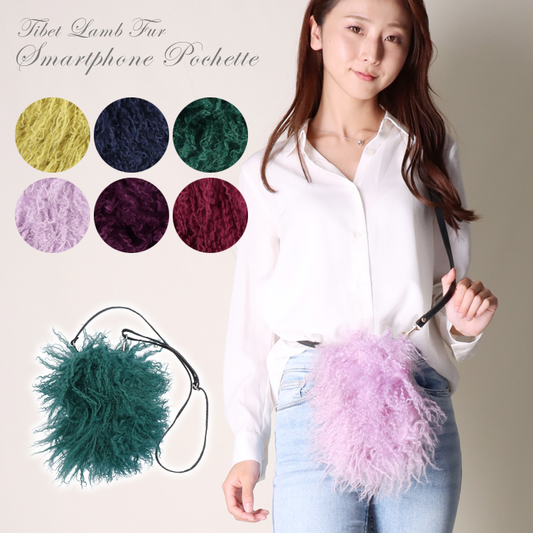 セール ショルダーバッグ ファーバッグ スマホポシェット 日本製 チベットラム ラム ファー バッグ スマートフォン ポシェット かわいい レディース