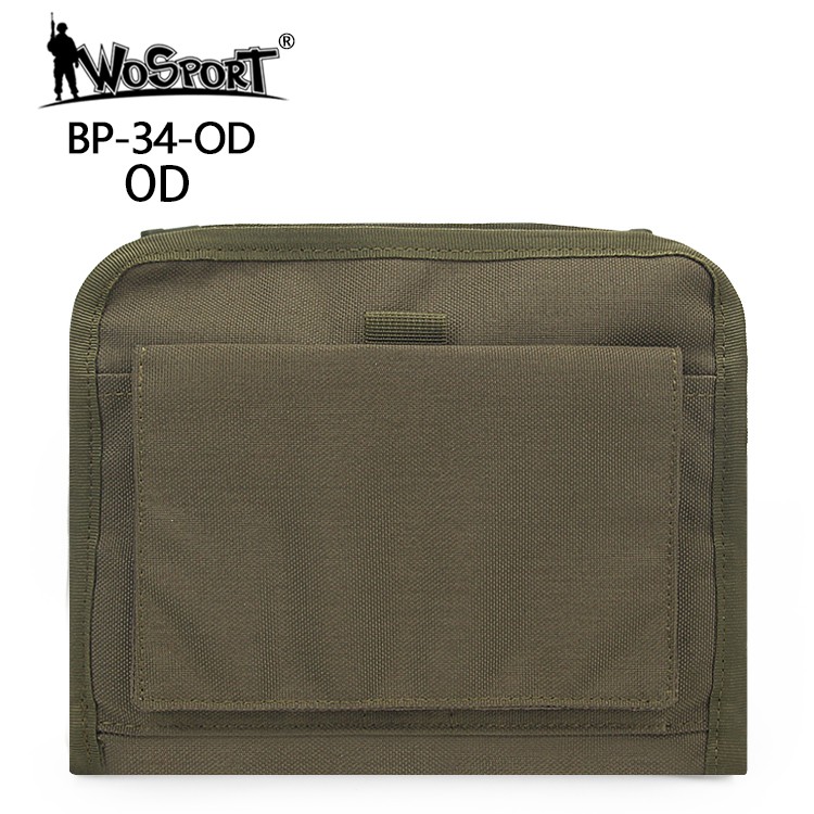 フロントのプルタブを引くと大きなポケットがあり、ベルクロ固定式のカバーを展開するとペンホルダーと2つのポケットが現れます。MOLLEストラップは2本あり、MOLLE対応の各種装備品やプレートキャリアのフロントパネルへの装着に最適。
