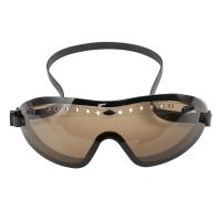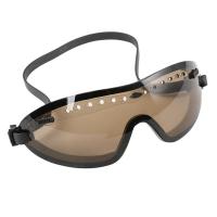 FMA製のブルーレギュレータータイプ ゴーグルです。薄型&軽量でストレスが少なく、単体での使用はもちろん、サイドにベルクロが装備されているヘルメットに装着することでより手軽に使用ができます。また、レンズ上部にあるパーツを動かす事で排気孔の開閉が可能ですので曇り防止にも役立ってくれます。本製品にはゴーグル本体とは別に、レンズクリーナーと専用ケースが付属します。