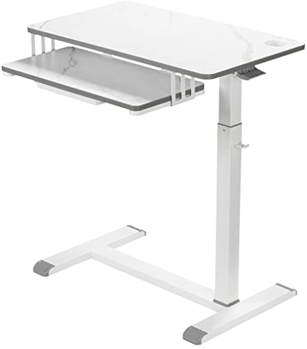 ETHU サイドテーブル スタンディングデスク ガス圧 広い天板 介護用ベッドサイドテーブル 無段階高さ調節 73〜109cm キーボード収納