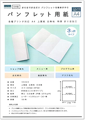 ペーパーエントランス パンフレット用紙 A4 三つ折り 50枚 メニュー 案内状 手作り プリントペーパー 55069
