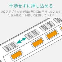 ・個別スイッチには、ACアダプターや大きめのプラグを接続してもスイッチに干渉しにくい、斜め配置のスイッチを採用しています。