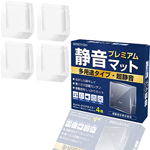 【SOSOYOKI】静音マット・プレミアム 多用途タイプ 静音 防音 防振 騒音対策 振動防止 40×40×12mm クリア 4枚入り