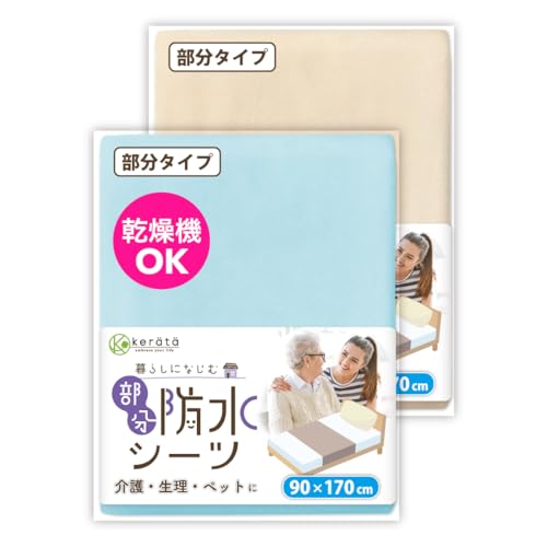 (ケラッタ) 防水シーツ 介護 部分用 90×170cm しっかり巻き込めてズレ防止 乾燥機対応 綿100% 抗菌 防ダニ 2枚組 (g ブルー