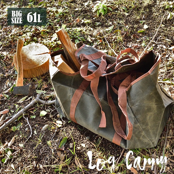 キャンプの際にもはや必須の薪を安全に運ぶ事ができる帆布性のログキャリーです。