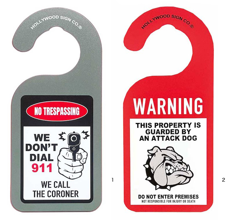 2は牙を剥き出しにした見るからに怖いわんちゃんのハンガーサインです。攻撃犬がいるからと警告・注意を促しています。