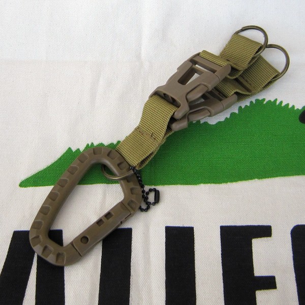 レターパックプラス対応 タクティカル モール キーホルダー カーキ カラビナ 二股キーホルダー キャンプ アウトドア 登山 便利グッズ メンズ レディース