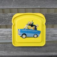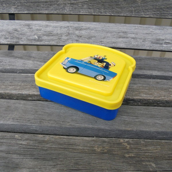 車で楽しそうにドライブしているミニオンのタッパです。パンの型になっているのが可愛いですね〜。