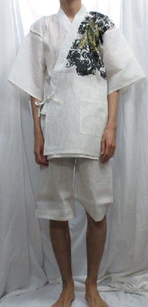 難あり 和柄 甚平 T214343 竜 オフホワイト Lサイズ