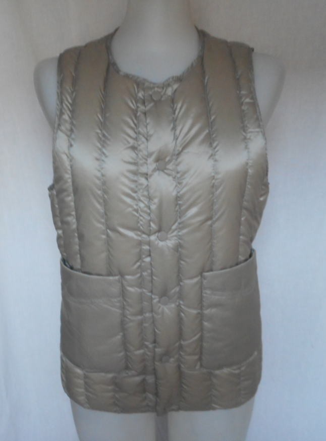 このベストはノーブランド品ですが、大手ブランド品生産工場より放出された商品のため、しっかりとした生地・縫製となっています。インナー用に生産されたものですが、中身が多めに入っているので、春秋にアウターベストとして、冬にはインナーベストとしてご着用いただけます。素材は表面・裏地ナイロン100%、中身はダウン90%・フェザー10%です。サイズは実寸で、S(胸囲92cm・着丈58cm・肩幅31cm)、M(胸囲96cm・着丈59cm・肩幅33cm)、L(胸囲100cm・着丈61cm・肩幅36cm)、XL(胸囲106cm・着丈63cm・肩幅38cm)くらいです。注:ホック仕様のため、優しく着用してください。また、ダウン製品の場合、多少の羽が外に出てくる場合が御座いますので、ご了承ください。お手入れの際は、内タグの表示タグをご参照ください。