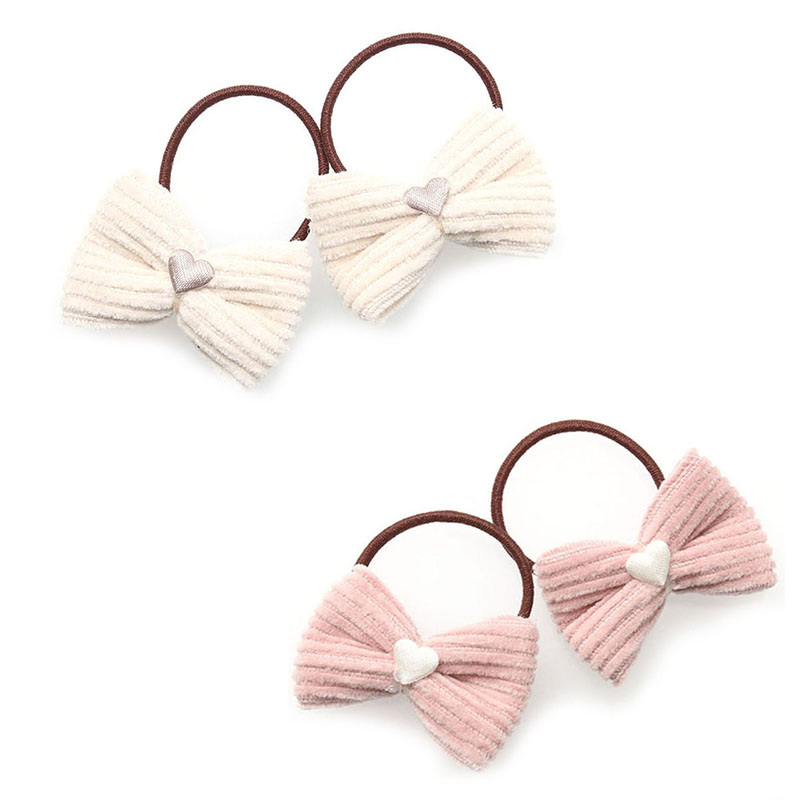 ヘアゴム キッズヘアゴム C10-14 リボン 2個セット コーデュロイ 子供 ヘアアクセサリー ハート ミニゴム ベビー 秋冬 Xmas 0歳 キッズポニー