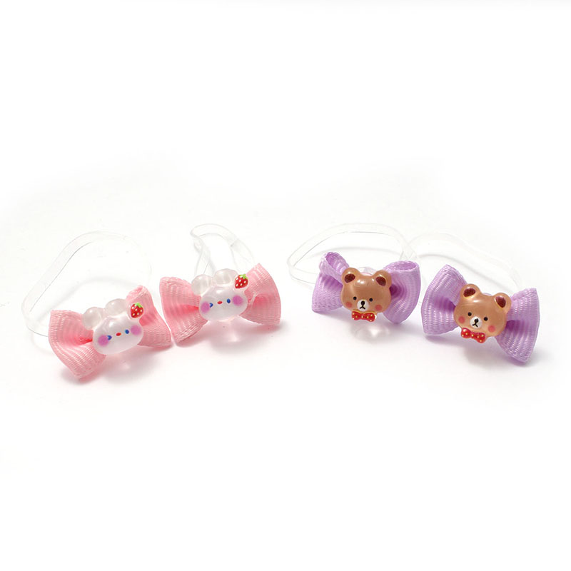 ヘアゴム ミニリボン アニマル 2個セット C20-28 ポリウレタンゴム キッズヘアゴム うさぎ ピンク くま パープル