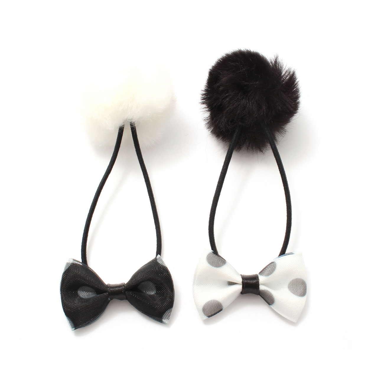 ヘアゴム フェイクファーC25-60 水玉リボン モノトーン 子供 ヘアアクセサリー