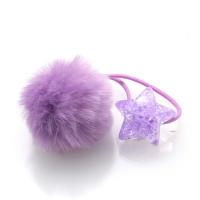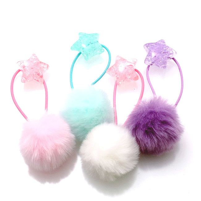 ヘアゴム ファーボンボンとクリアスター キッズヘアゴム C25-74 星 パープル グリーン ホワイト ピンク フェイクファー ぽんぽん ヘアポニー 子どもヘアゴム