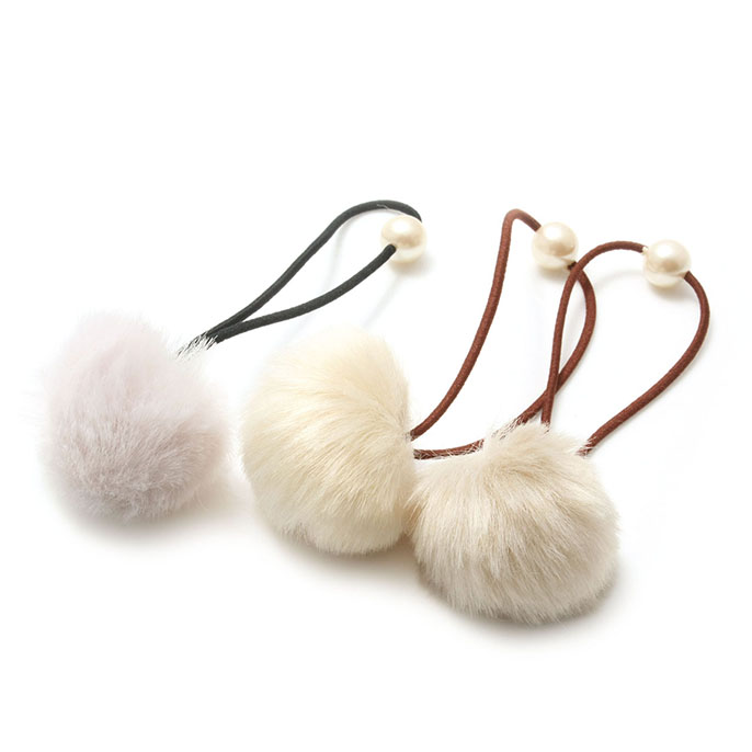 フェイクファーボンボンとパールボールの大人カラーぼんぼんポニー