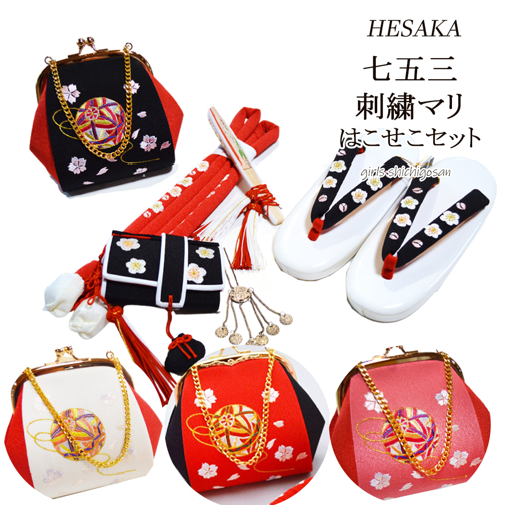 七五三 草履 バッグ はこせこ 6点 セット 刺繍 (マリ) 小物 7歳 七歳