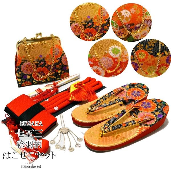 七五三 草履 バッグ はこせこ 7点 セット 絵羽柄 小物 7歳 七歳