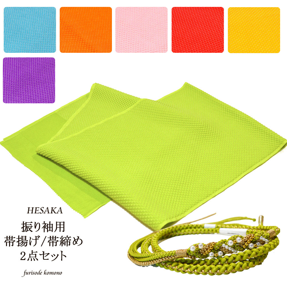 | ◆サイズ 帯締め:長さ約165cm(房の長さ含まず) 幅0.8cm 帯揚げ:長さ約160cm 幅約24cm ◆カラー 赤 ピンク オレンジ 黄 黄緑 紫 水色 ◆素材 絹 帯締め:絹/パール/ビーズ/金糸 帯揚げ:絹 ・絹製品は光沢が美しく、発色も鮮やか。 また、しなやかで吸水性にも優れている為、繊維の最高級品とされています ◆内容 帯締・帯揚セット ◆注意 |