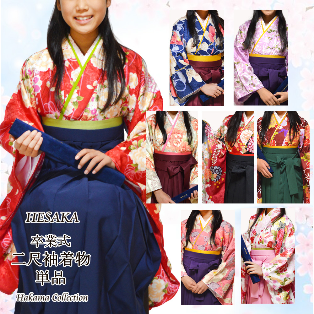 | ◆特徴 二尺袖着物とは、袖の長さが二尺=76cm程の着物のことをいいます。 振袖より袖丈が短いので、可愛らしく軽やかなイメージになります。 ハレの日にふさわしく、小振袖ともいいパーティーや卒業式など、 気軽に礼装を楽しみたい時にちょどいいお着物です。 卒業式やイベントに、袴と合わせてご利用ください。 ◆用途 卒業式、謝恩会、弓道、書道等 |