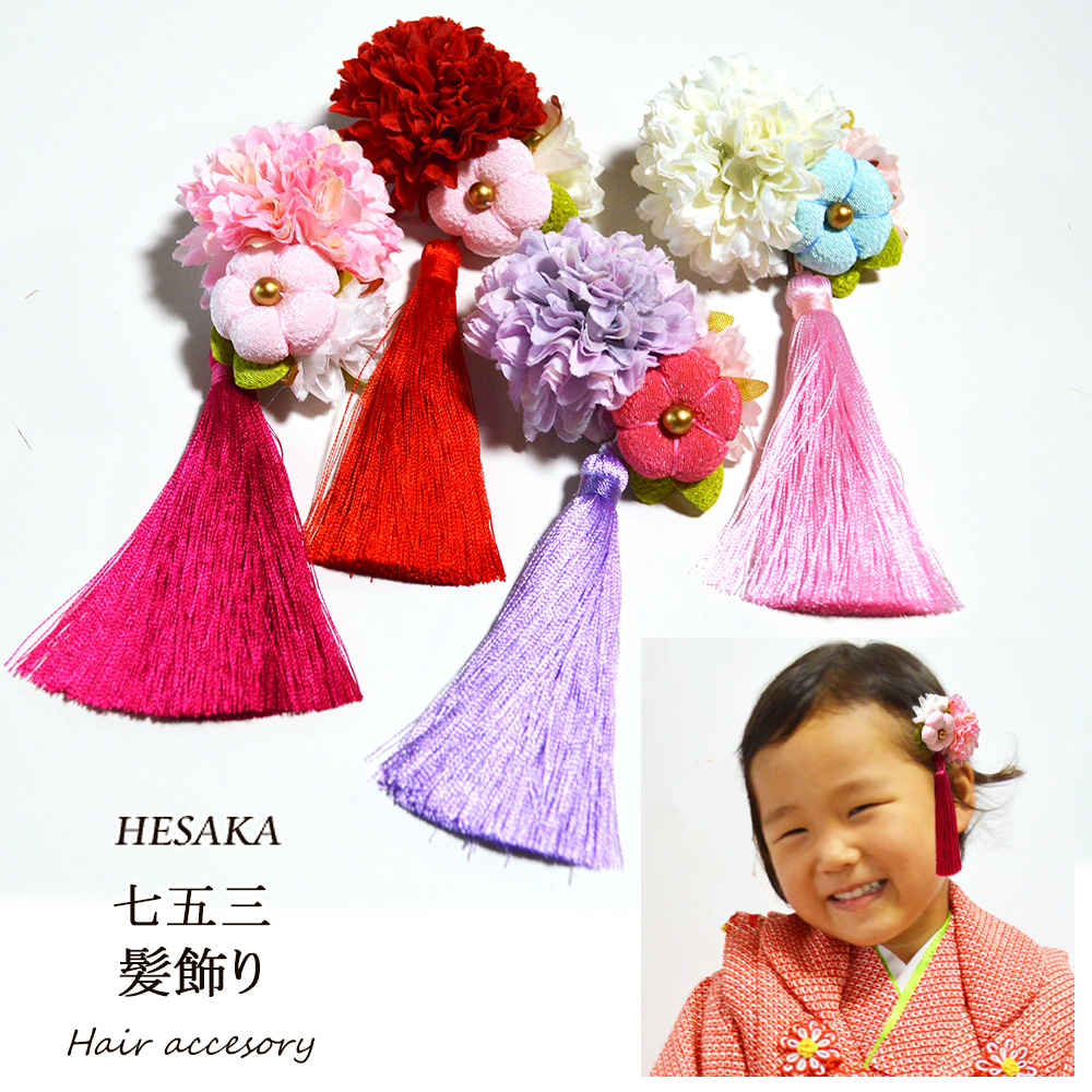 | ◆特徴 人気のマム花飾りに、存在感のあるタッセルが特徴の髪飾りです。 キレイな色の組み合わせが素敵で お着物に合わせてお好みのタイプをお選びください。 パッチンピンで留められるので、小さなお子様にも付けやすく好評です。 3歳、7歳の七五三の着物姿にはもちろん、浴衣にもお使い頂けます。 ◆用途 七五三・お正月・お雛祭り・結婚式等 |