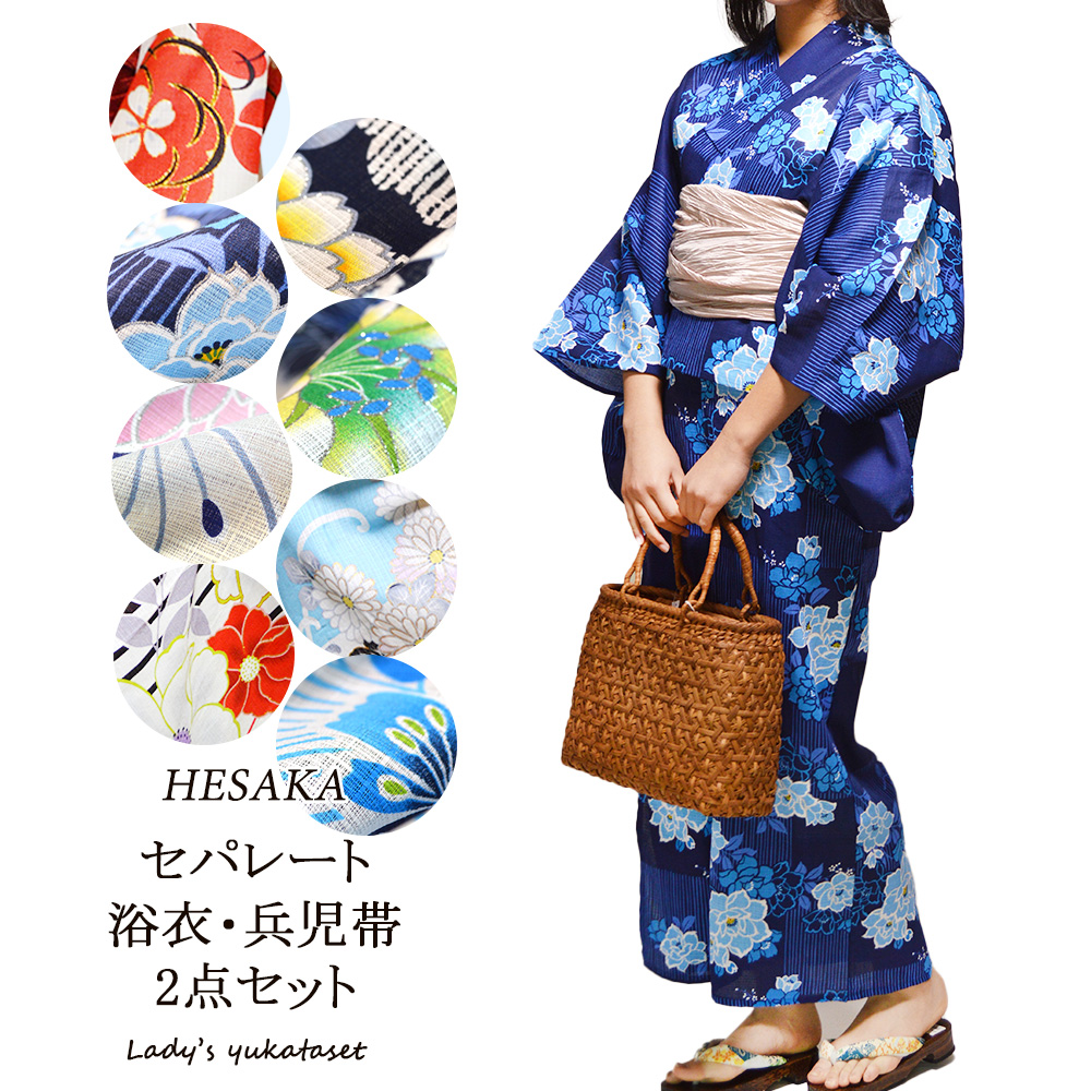 セパレート 浴衣 2点 セット 女性 ゆかた 兵児帯 大人 レディース 簡単着付け 1人でも簡単 大きいサイズ 海外の方にも