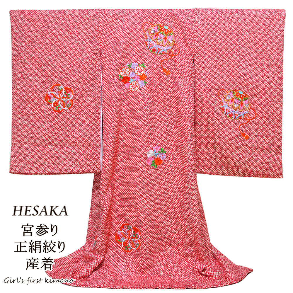 | ◆特徴 本絞りとは、一つ一つ手作業で布を糸で括って染める伝統技法(絞り染め)であり 「総絞り」は着物全体にびっしりと絞りが施されたもで、手間と時間がかかり、職人技の極みです。 凹凸のある柔らかな風合いと、独特の陰影が上品さを演出。 手仕事ならではの温かみと柔らかさが、赤ちゃんの初めての晴れ姿にぴったりです。 染めだけでなく立体感のある装飾が入ることで、着物に重厚感と格が出て 晴れ着としての格式が高く、お祝いの場にふさわしい 細部に至るまで見事な熟練の手技により丁寧に作られた産着です。 どなたがご覧になっても分かる程に格調高い逸品。 袖の丸みと肩上げ、腰上げをして頂ければ 七五三の3歳御祝着として着用可能です。 ◆用途 宮参り・七五三 |