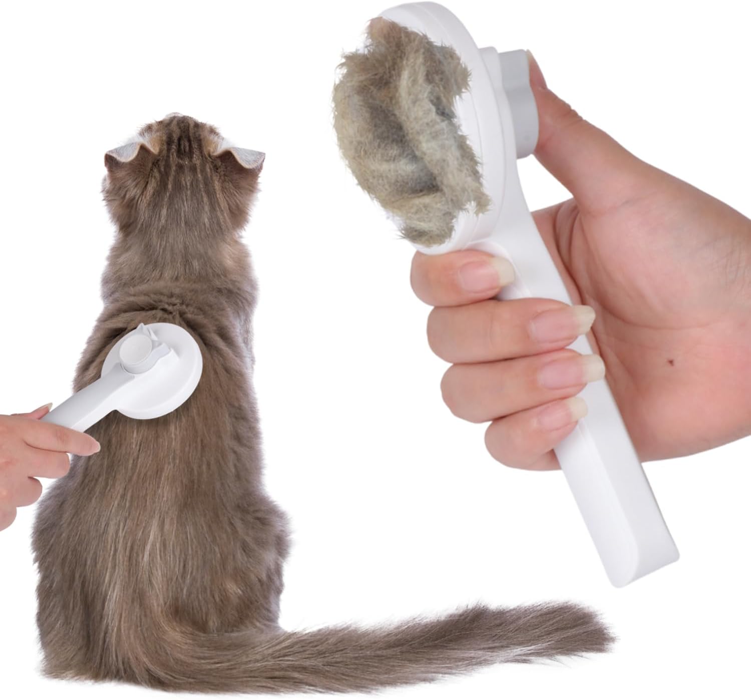 猫 ブラシ ペットブラシ 犬ブラシ 猫ブラシ ワンタッチで毛玉が取れる よく取れる 長毛 短毛 子猫 ワンタッチ ワンプッシュ 毛取り 抜け毛取り