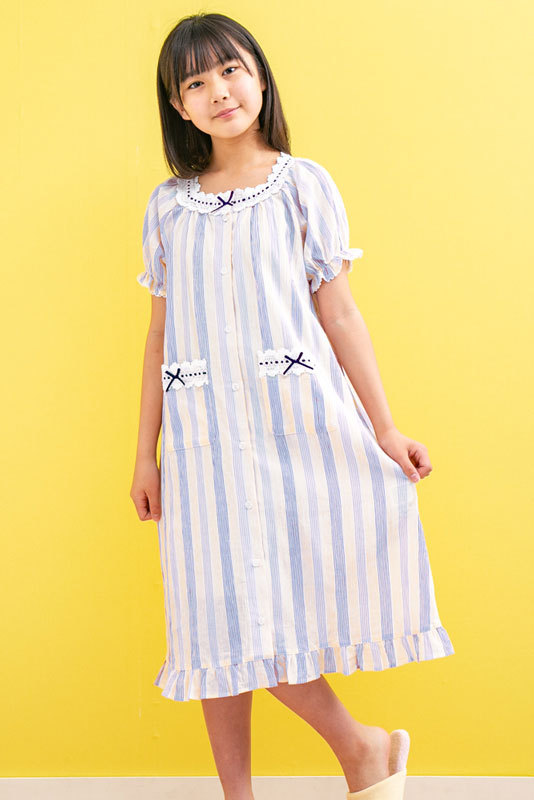パジャマ キッズ 女児 ワンピース 前開き半袖 綿100% 柔らかい肌触りで肌に優しいワッシャー加工地 夏 ネグリジェ ナイトウェア ルームウェア 部屋着