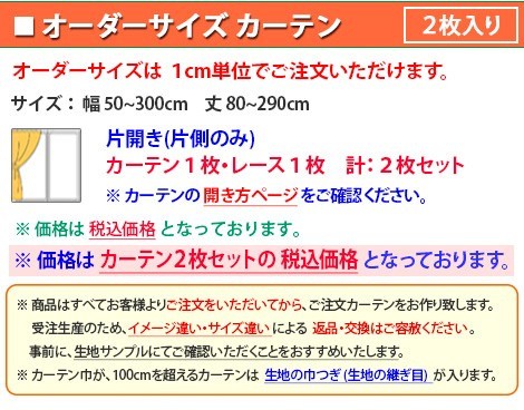 ※厚地1枚レース1枚入りのカーテンです。両開きをご希望の場合は、数量2でご購入ください。