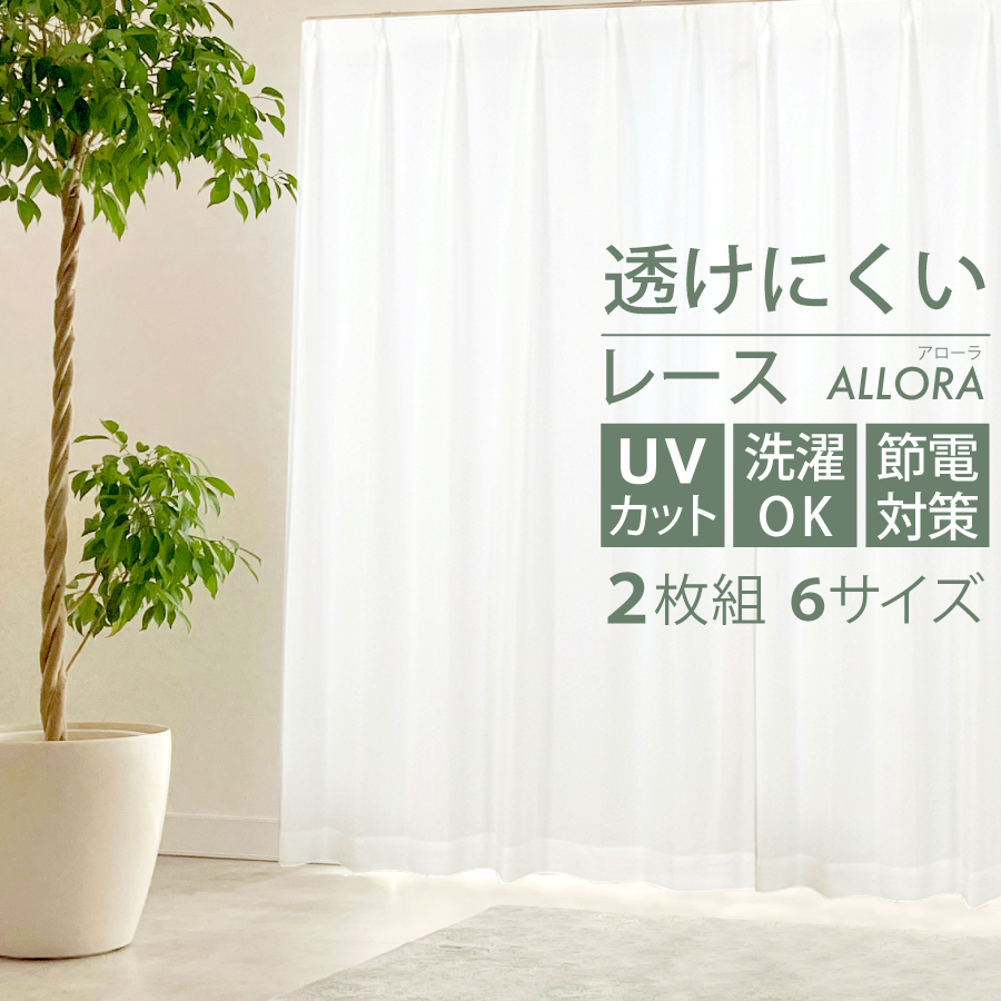 レースカーテン 2枚組 ミラーレースカーテン 遮熱 UVカット 90% 省エネ ポリエステル フック付 幅100cm 丈103cm 133cm 176cm 188cm 198cm 213cm Allora アローラ