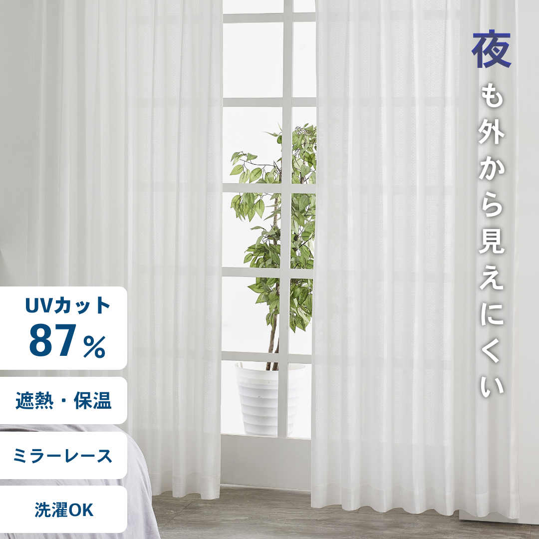 レースカーテン 2枚組 ミラー UVカット 遮熱 家庭洗濯 遮像 省エネ フック付き カラーレース シンプル 100cm幅 2枚入 150cm幅 200cm幅 1枚入 mina ミーナ