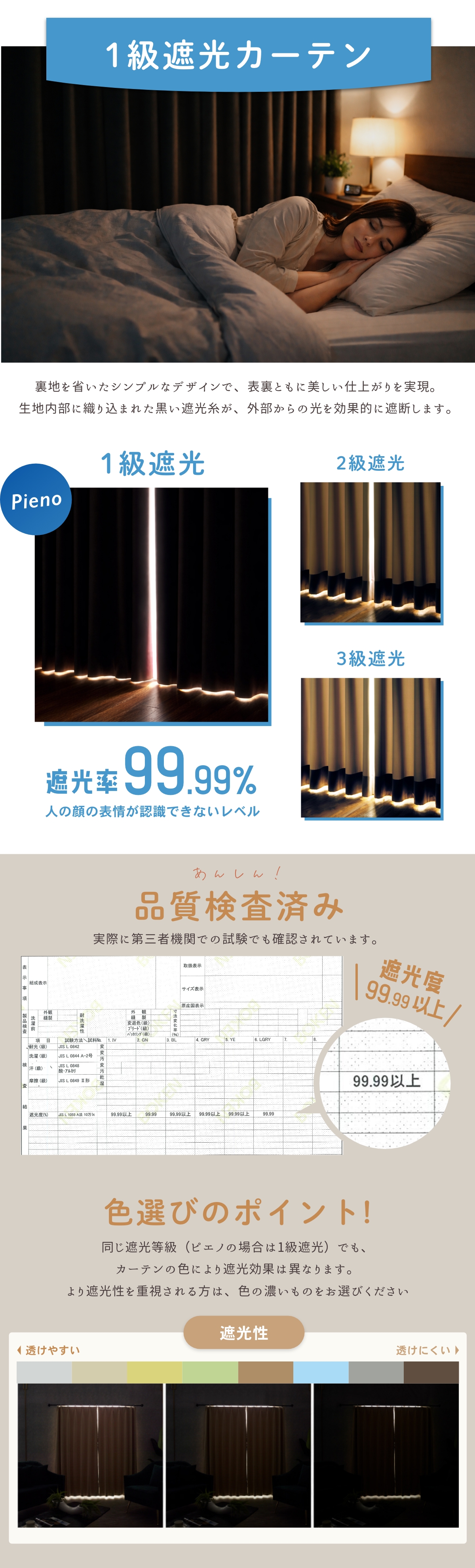 1級遮光カーテン (遮光率 / 99.99%以上)