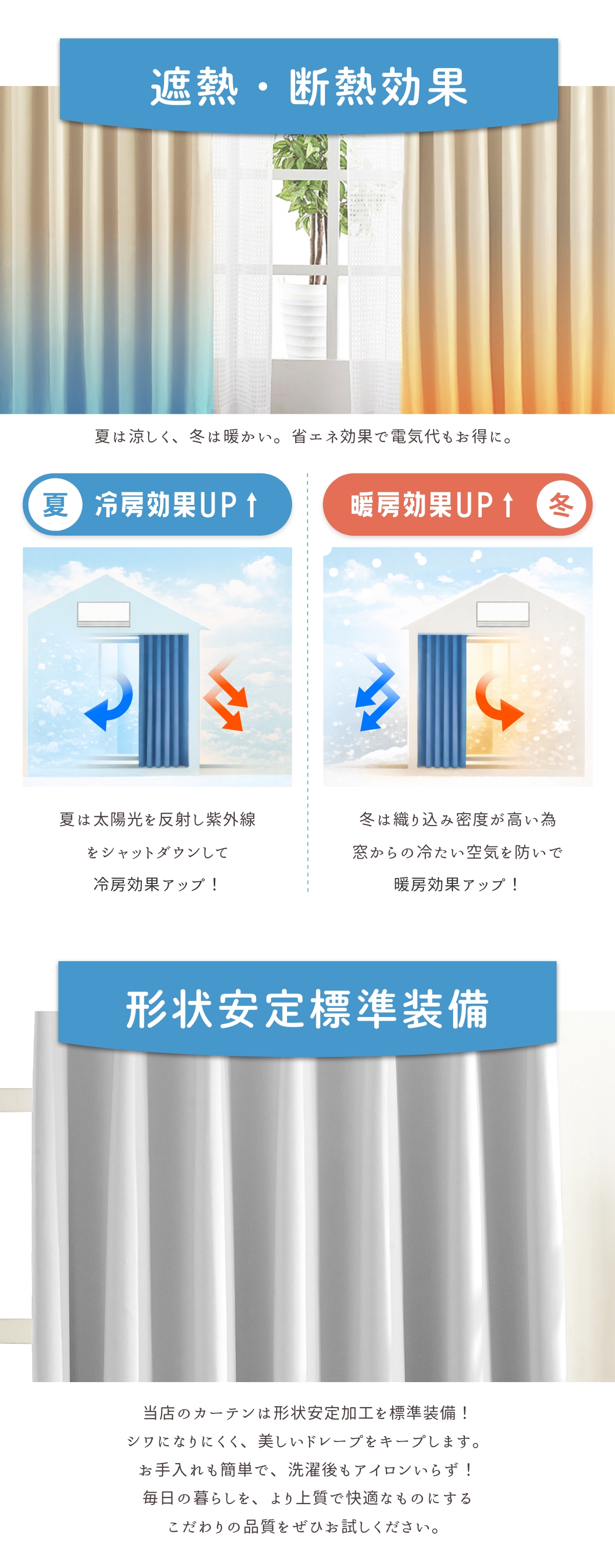 遮熱・断熱、形状記憶加工 標準装備