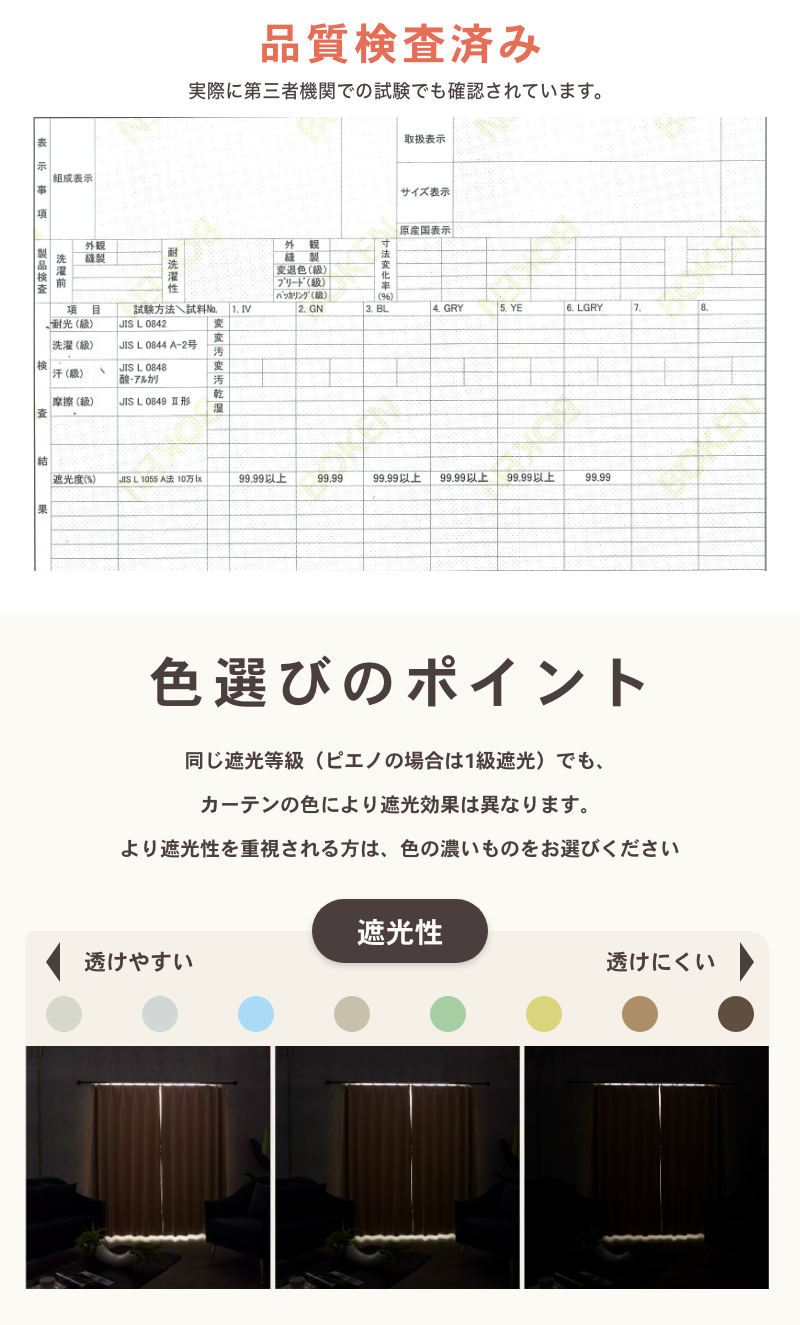 1級遮光カーテン (遮光率 / 99.99%以上)